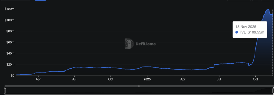 Avantis’ total value locked has slipped from $119.42 million on November 4 to $109.55 million on November 13. That is a drop of 8.26% in ten days. A TVL drop often signals lighter on-chain activity, and some whales reacted to this pullback.