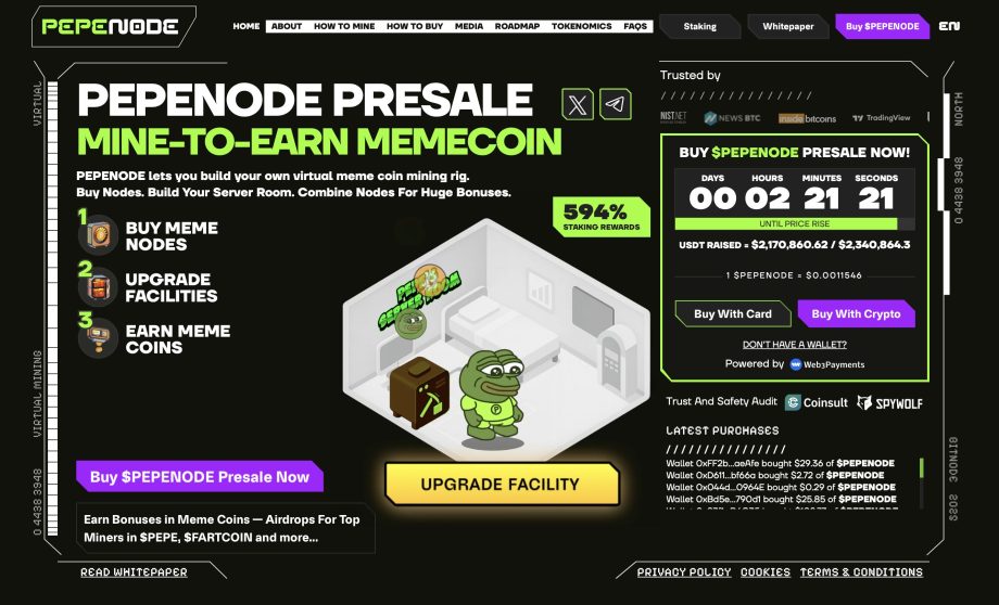 Investors can buy the coin using ETH, USDT, BNB, or fiat currency, while they will receive their PEPENODE upon the sale’s completion.