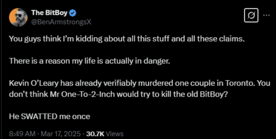 Kevin O’Leary just walked away with a $2.8 million courtroom win. The Shark Tank investor secured a default judgment against former crypto influencer Ben Armstrong, better known as BitBoy Crypto.