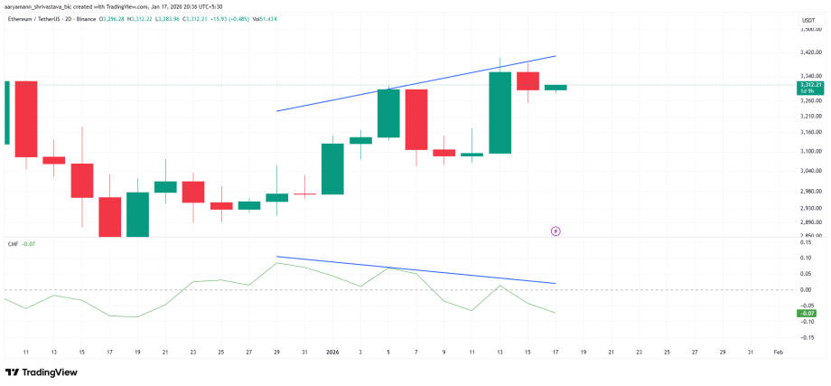 Ethereum has shown a clear bearish divergence over the past three weeks, signaling weakening internal strength. While the ETH price continued forming higher highs, the Chaikin Money Flow indicator posted higher lows. This pattern suggests price appreciation occurred alongside rising capital outflows rather than sustained inflows.