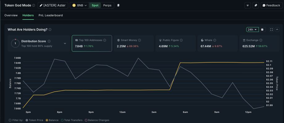 On-chain data shows ASTER’s biggest holders are quietly strengthening their grip.