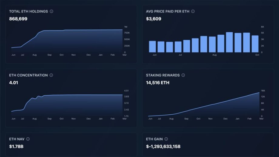 The reported loss is primarily a function of accounting mechanics meeting crypto volatility. As of March 9, 2026, SharpLink held 867,798 ETH, valued at approximately $1.72Bn, making it the second-largest public holder of the asset, behind BitMine.