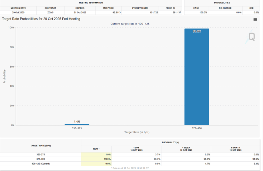 No other major reports, including jobs and retail sales data, will be published until the shutdown ends. However, something will occur differently, with the CPI data coming only five days before the Fed’s October 29 meeting.